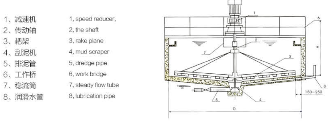 GZX  型中心傳動刮吸泥機性能參數